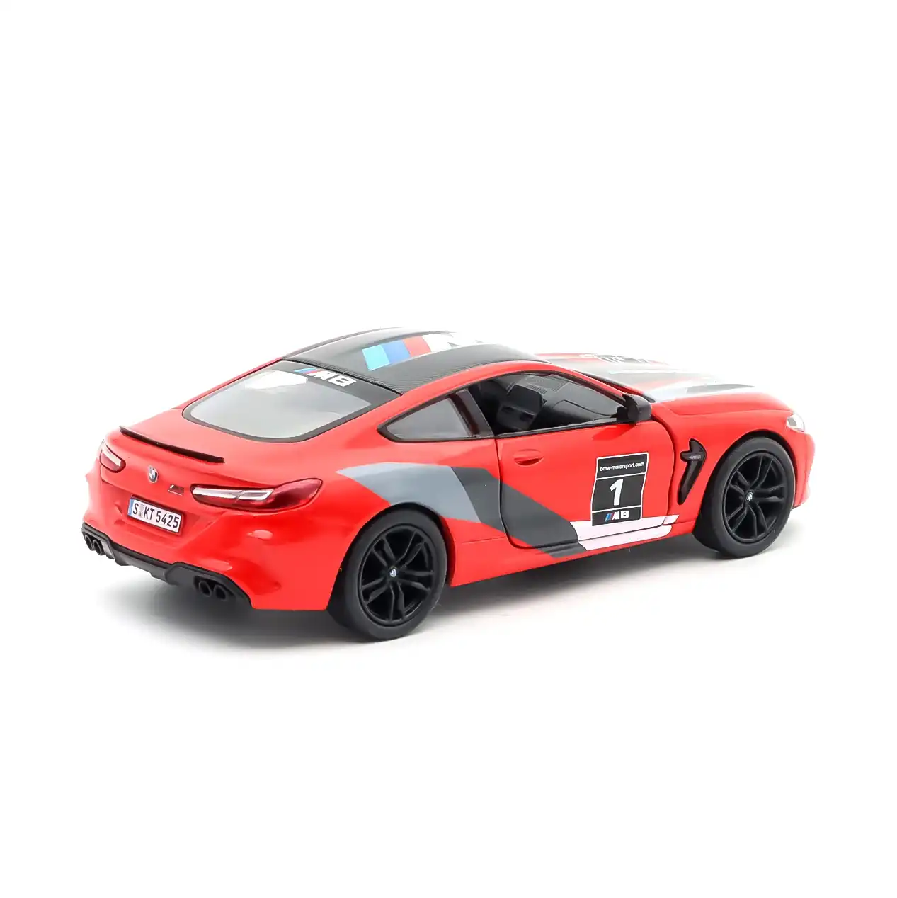 Kinsmart 1/38 BMW M8 Competition Coupe, metal üst gövdesi ve kaliteli boya işçiliğiyle öne çıkan gerçekçi bir die-cast modeldir. Açılabilir kapıları sayesinde iç tasarım detayları kolayca görülebilir. Çek-bırak mekanizması, modelin ileri doğru hızla hareket etmesini sağlayarak hem oyun hem de koleksiyon amaçlı kullanımda keyif sunar. Alt şasi ve iç aksam dayanıklı plastikten üretilmiştir. BMW’nin agresif ve modern hatlarını yansıtan bu model, çocuklar ve koleksiyon meraklıları için ideal bir tercihtir. Ürün birden fazla renk varyantıyla satışa sunulmaktadır.