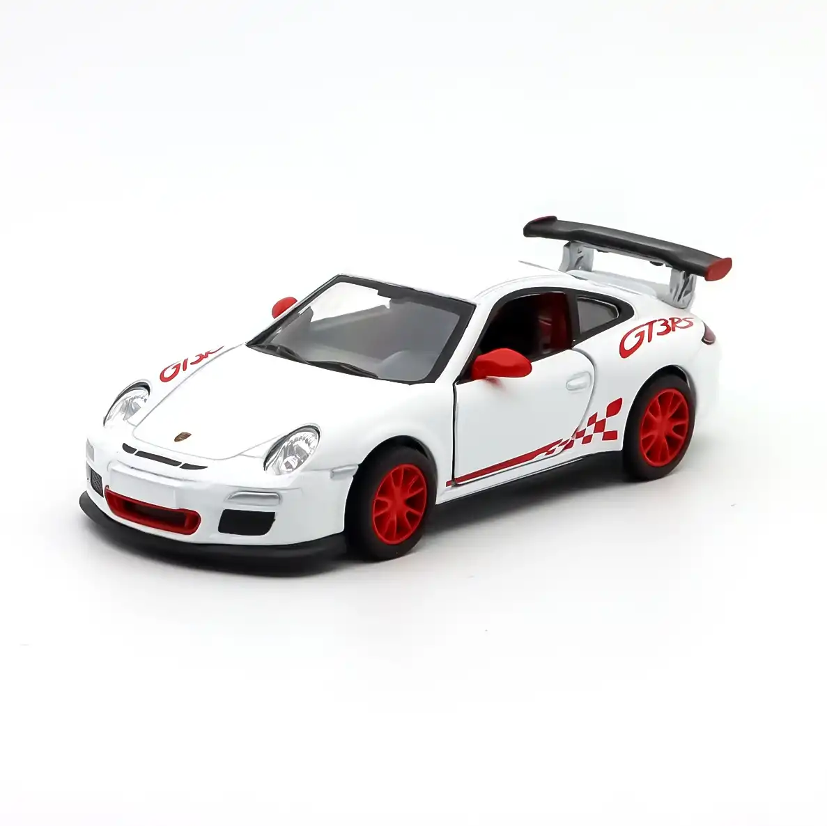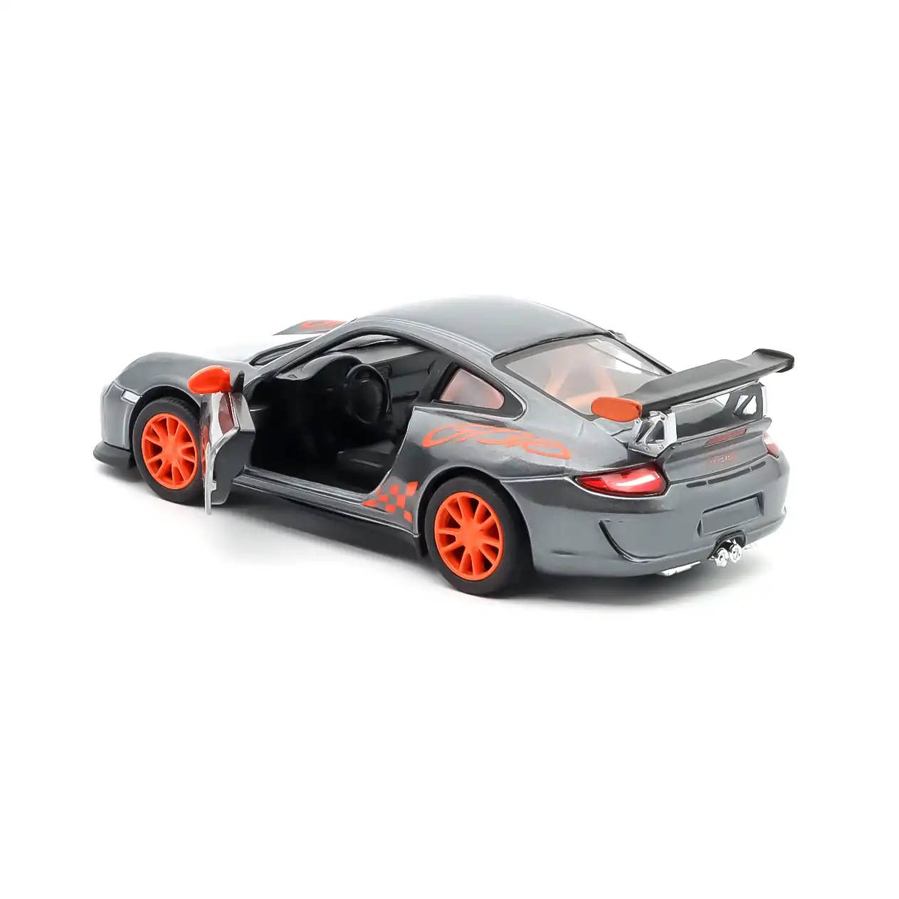Kinsmart 1/38 Porsche 2010 Porsche 911 GT3 RS, metal üst gövdesi ve özenli boya işçiliğiyle gerçek aracın sportif hatlarını başarıyla yansıtan detaylı bir die-cast modeldir. Açılır kapıları sayesinde iç kabin yapısı görülebilir ve modelin gerçekçiliği artar. Çek-bırak mekanizması, aracın ileri doğru hızla hareket etmesini sağlayarak hem oyun hem de koleksiyon amaçlı kullanım için uygun bir deneyim sunar. Alt şasi ve iç bölüm dayanıklı plastik malzemeden üretilmiştir. Porsche’nin efsanevi GT3 RS modeline sadık tasarımıyla dikkat çeken bu ürün, birden fazla renk varyantıyla satışa sunulur.