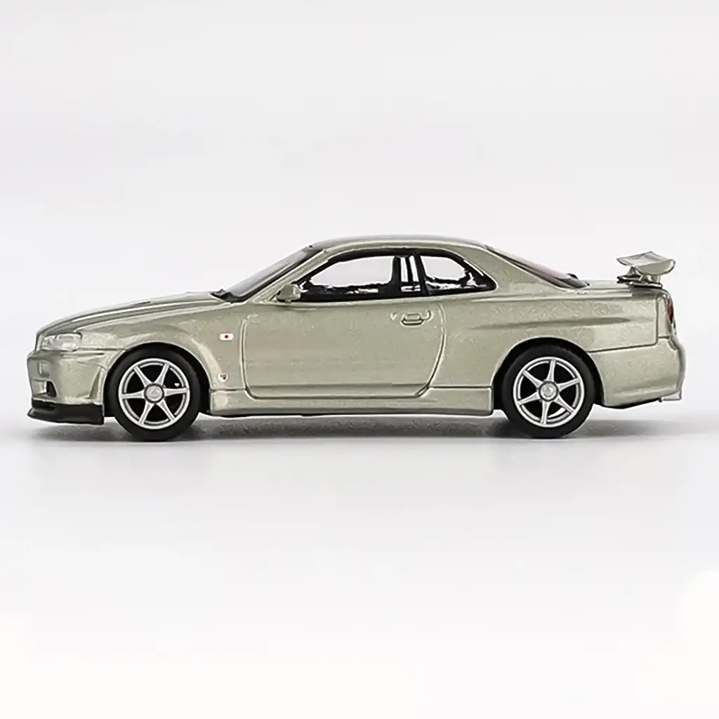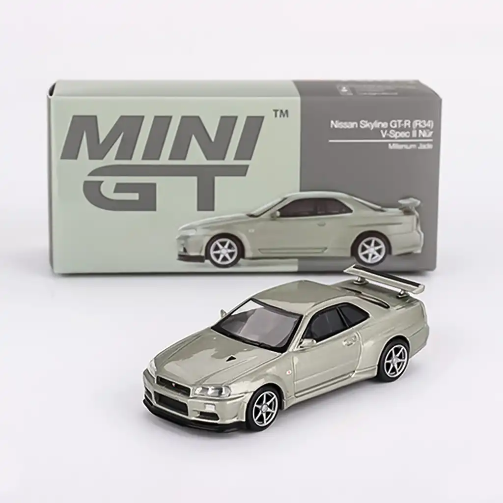 R34 GT-R’ın sınırlı “V-Spec II Nür” versiyonu, efsanevi “Millenium Jade” rengiyle Mini GT kalitesinde 1:64 ölçekte hayat buluyor. Döküm metal gövde, ayrı parçalı far/stop detayları, agresif tampon-ızgara formu, arka spoyler ve gerçekçi jant-fren seti modeli vitrin ve diorama için ideal kılar. Serbestçe dönen kauçuk lastikler doğal bir stance sunarken ince baskılar, Nür’e özgü sportif karakteri öne çıkarır.