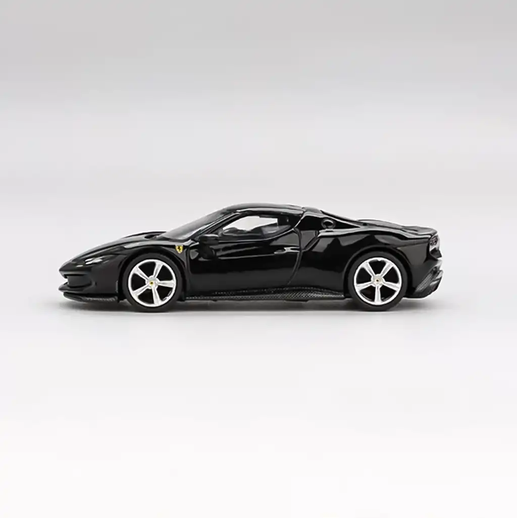 Mini GT 1/64 BBR: Ferrari 296 GTB Nero Daytona, Ferrari’nin modern süper otomobil jenerasyonunu minyatürleştirirken koleksiyon standartlarını yüksek tutan bir modeldir. Nero Daytona (siyah) rengiyle gövdeye sağlam bir varlık kazandırırken, BBR serisinin üst düzey işçiliği ve Mini GT’nin metal gövde kalitesi birleşerek gerçekçi ve şık bir görünüm sunar. Gerçek araçta bulunan aerodinamik detaylar, karakteristik Ferrari hatları ve yüksek performans imajı; modeli sadece bir oyuncaktan öte koleksiyon açısından değerli hale getiriyor. Koleksiyon vitrinlerinde hem Ferrari severlerin hem de Mini GT BBR takipçilerinin dikkatini çekecek benzersiz bir modeldir.