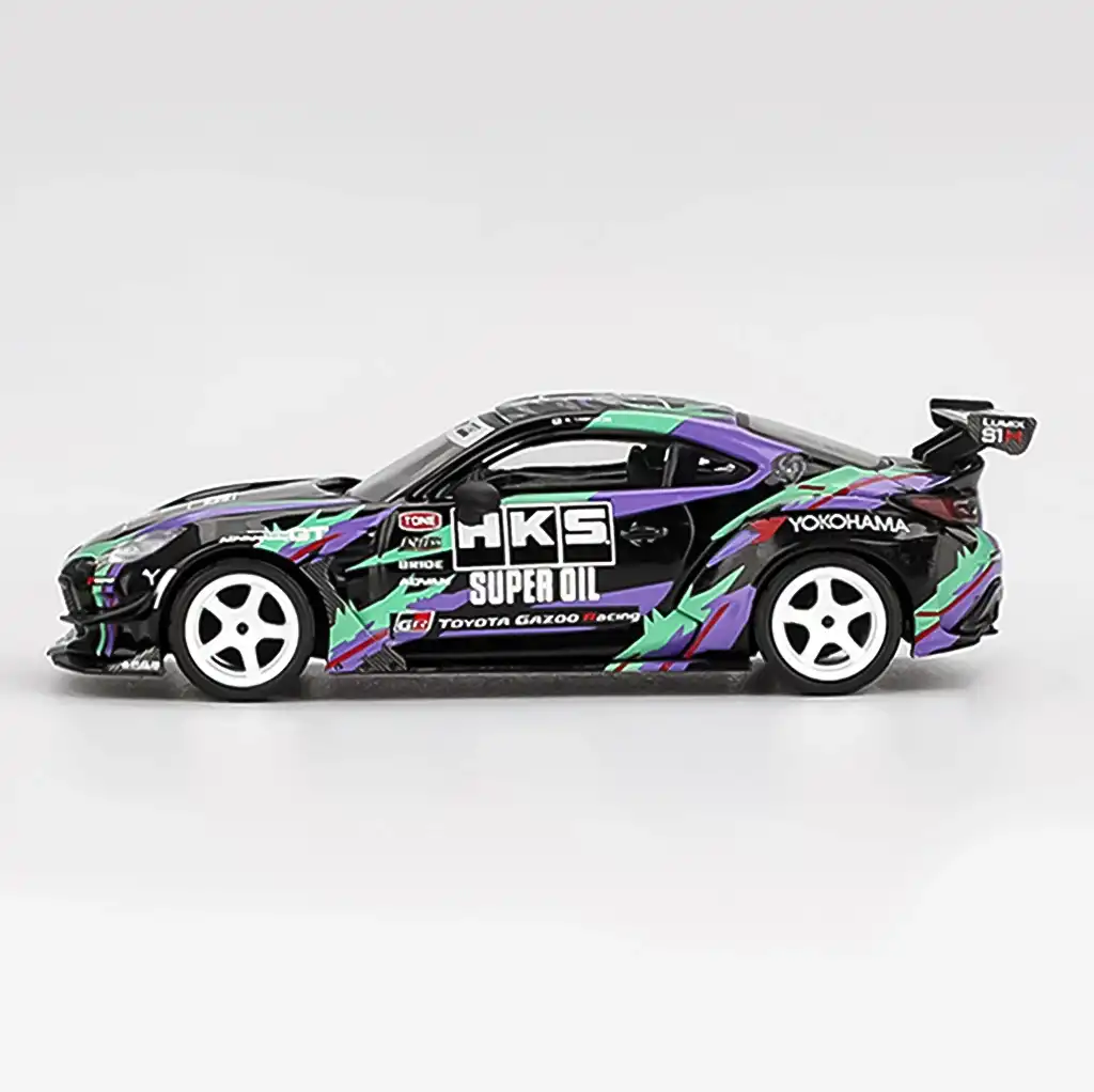 Mini GT’nin 1/64 ölçekli Toyota GR86 HKS Type R 2022 Tokyo Auto Salon modeli, modifiye tutkunlarının yakından tanıdığı HKS markasının efsanevi performans çizgilerini taşıyor. Gerçek araç, 2022 Tokyo Auto Salon’da tanıtılmış ve GR86 platformunun potansiyelini gözler önüne sermişti. Mini GT bu özel versiyonu yüksek detaylı diecast gövde, jant ve aerodinamik kit replikasıyla koleksiyonlara kazandırıyor. Siyah-mor HKS livery’si, karbon detayları ve yarış odaklı görünümüyle model, JDM kültürünün saf bir yansıması. Toyota ve HKS iş birliğinin modern bir sembolü olarak her koleksiyonerin vitrinde mutlaka yer vermesi gereken bir parça.